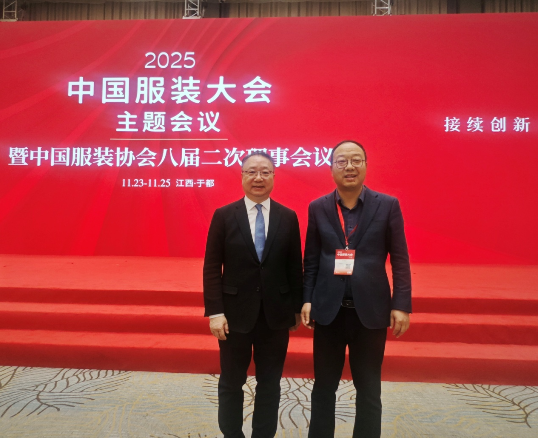 当日下午,阮肇民一行出席以“接续创新·高质发展”为主题的2025中国服装大会。作为全国服装行业年度顶级盛会,本次会议汇聚了众多行业领袖、专家学者与院校代表,共同探讨产业转型路径与高质量发展方向。