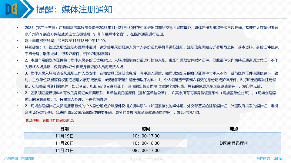 - 产业对接:举办“整车厂 & Tier1 & 汽车电子产业链 1v1创新产品技术对接会”及第十二届广州国际汽车技术展览会。