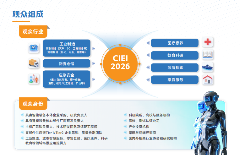 值得一提的是,展会同期将联动举办模具装备展、新能源汽车展等多场相关展会,打通上下游产业链,放大产业协同效应。从工业制造、物流仓储到医疗康养、智慧农业,从核心部件厂商到主机厂供应链,从投资机构到产业园区——无论你身处产业链的哪个环节,CIEI 2026都将是不可错过的年度盛会。
