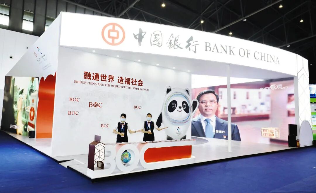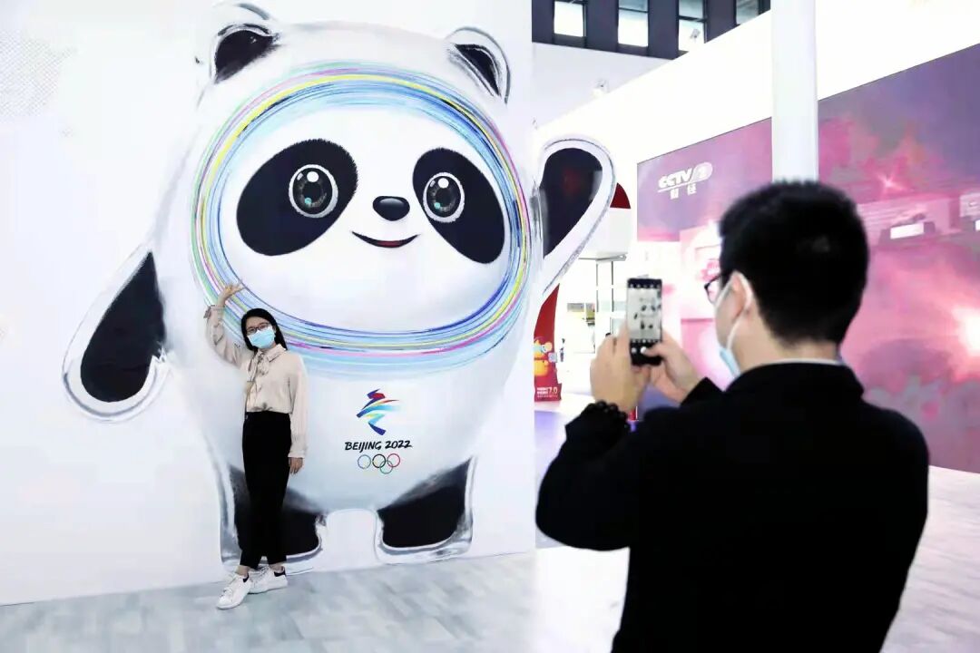 走近中国银行展位,映入眼帘的就是一座银装素裹的“冰雪世界”,入口处一只憨态可掬、充满科技感的熊猫——2022年北京冬奥会吉祥物“冰墩墩”,更是让人眼前一亮,吸引了众多观众驻足“打卡”。