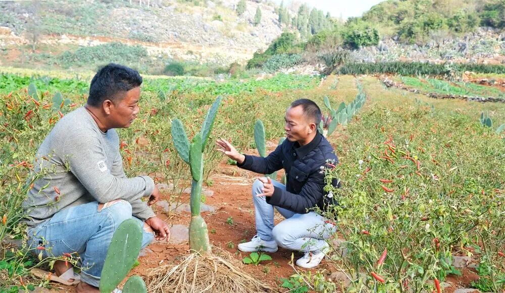 2021年,地方党委、政府,通过“归雁行动”回引常年在外经商的鲁春红返村,带领11名青年和优秀党员组建强有力的村党支部和村小组班子。成立合作社,因地制宜发展仙人掌产业,以“党支部+合作社+公司+农户”模式,打响“石漠治理+产业破局”双线战役。