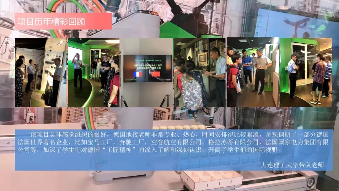 访问地点:LV基金会(设计师课程讲座)、法国圣戈班集团(Saint-Gobain) 世界著名工业企业、德国通快集团(TRUMPF)尖端制造代表企业、梅赛德斯奔驰工厂(Mercedes-Benz)或奥迪(Audi)工业4.0代表。宝马汽车企业馆(BMW)、保时捷企业馆(Porsche)、联合国教科文组织(UNESCO
