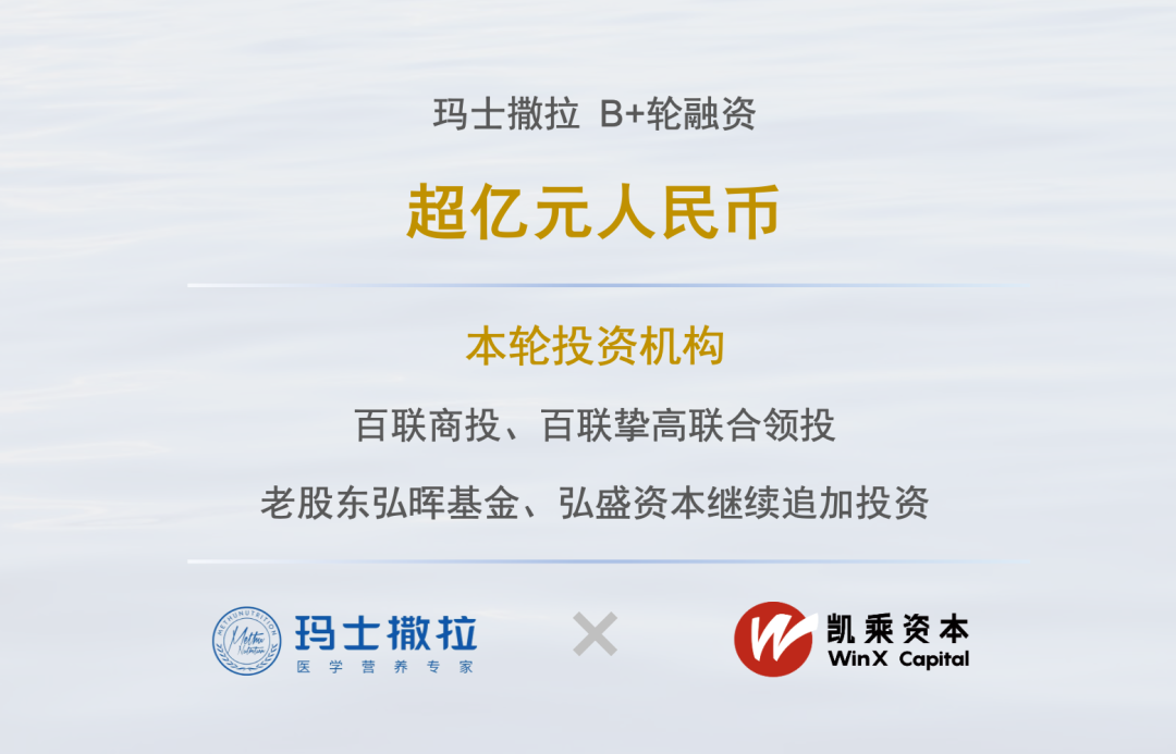 据了解,2025年2月19日,玛士撒拉宣布完成近2亿元B轮融资,本轮融资由中金资本旗下基金、弘盛资本、弘晖基金联合领投,蜂巧资本、峰瑞资本跟投,凯乘资本担任独家财务顾问。