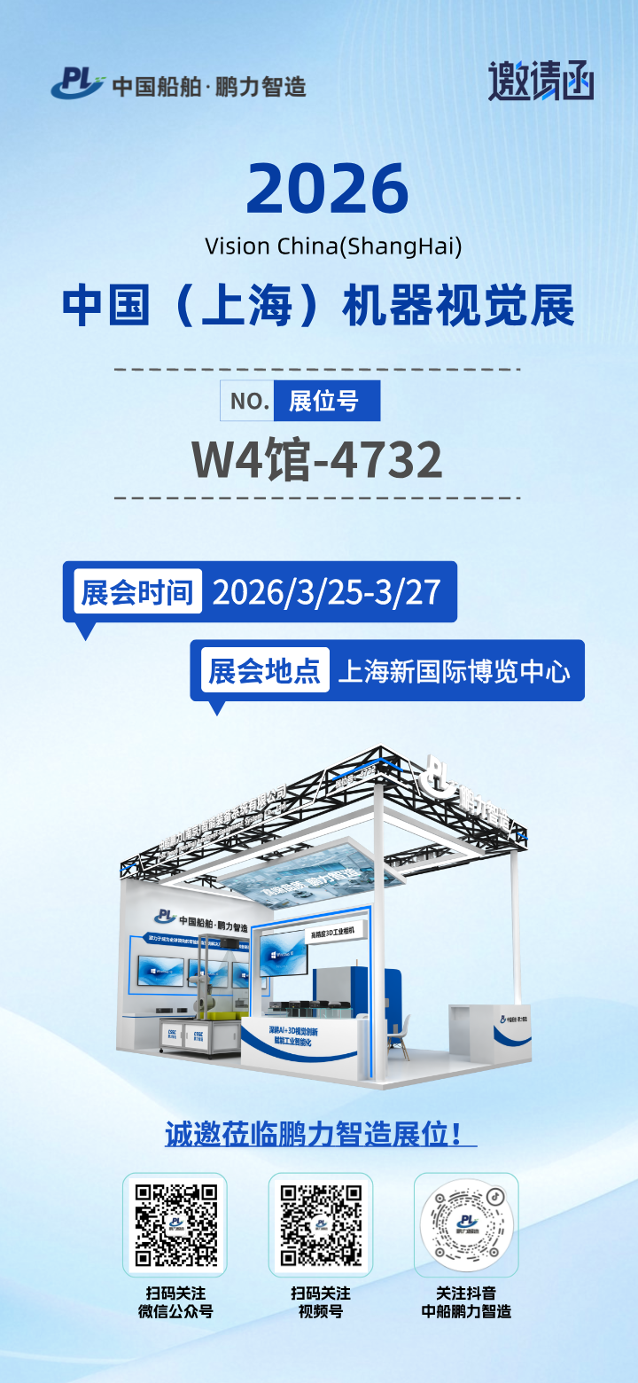 Vision China 2026上海机器视觉展暨研讨会于2026年3月25日至27日在上海新国际博览中心W4、W5馆举办。鹏力智造将携3D工业相机系列、桌面式光学检测设备、3D-AOI自动光学检测设备、自动充电机器人(3D视觉识别模块)等核心产品和系统解决方案精彩亮相,敬请期待!