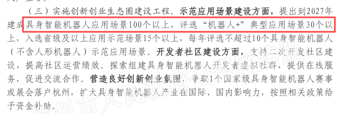 此外,杭州提出建设“智造社区”,打造“上下楼就是上下游”的产业链协同空间,这为机器人在小范围、高密度的制造生态内率先应用和验证创造了理想环境。