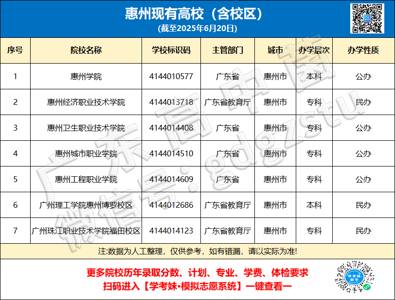 惠州学院是惠州市唯一的本科高校,是省属公办高校,前身是创办于1946年的广东省立惠州师范学校;1978年升本并更名为“惠阳师范专科学校”;1993年成立专科层次的“惠州大学”;2000年升本并更名为“惠州学院”。