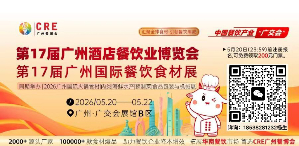 2026年5月20-22日,广州·广交会展馆B区,CRE广州餐博会与您相约,共探餐饮行业新蓝海,共赢华南市场新未来!
