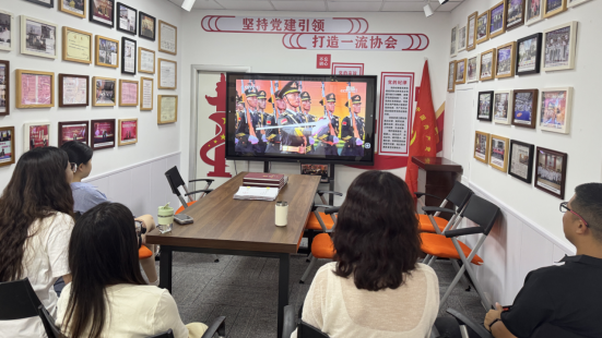 2025年9月3日上午,协会党支部及秘书处全体成员集中观看阅兵仪式。通过实时观看与深入参与,深刻感受到国家发展的辉煌成就,切实体会到民族精神的强大力量。阅兵仪式组织严密、程序规范,充分展现了中国人民解放军良好的精神风貌和过硬的战斗作风。观看活动有效强化了全体党员及秘书处全体同事的爱国主义教育,进一步激发了集体荣誉感和工作责任感,全体同志一致表示要以实际行动践行爱国热情,立足本职岗位,扎实工作。通过此次观看,秘书处全体成员更加深刻认识到维护和平发展环境的重要意义,切实增强了对党和国家事业发展的忠诚度与使命感。
