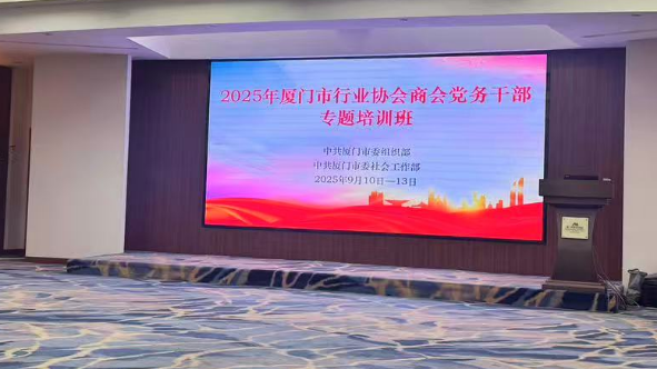 2025年9月10日至13日,党支部书记游姗参加2025年厦门市行业协会商会党务干部专题培训班。通过此次培训进一步提升了党务工作能力,增强了行业协会在新时代背景下的责任担当。党支部书记游姗表示,将结合所学内容,持续推进协会党建与业务深度融合,以高质量党建引领行业高质量发展,为厦门市卫厨产业转型升级注入红色动能。