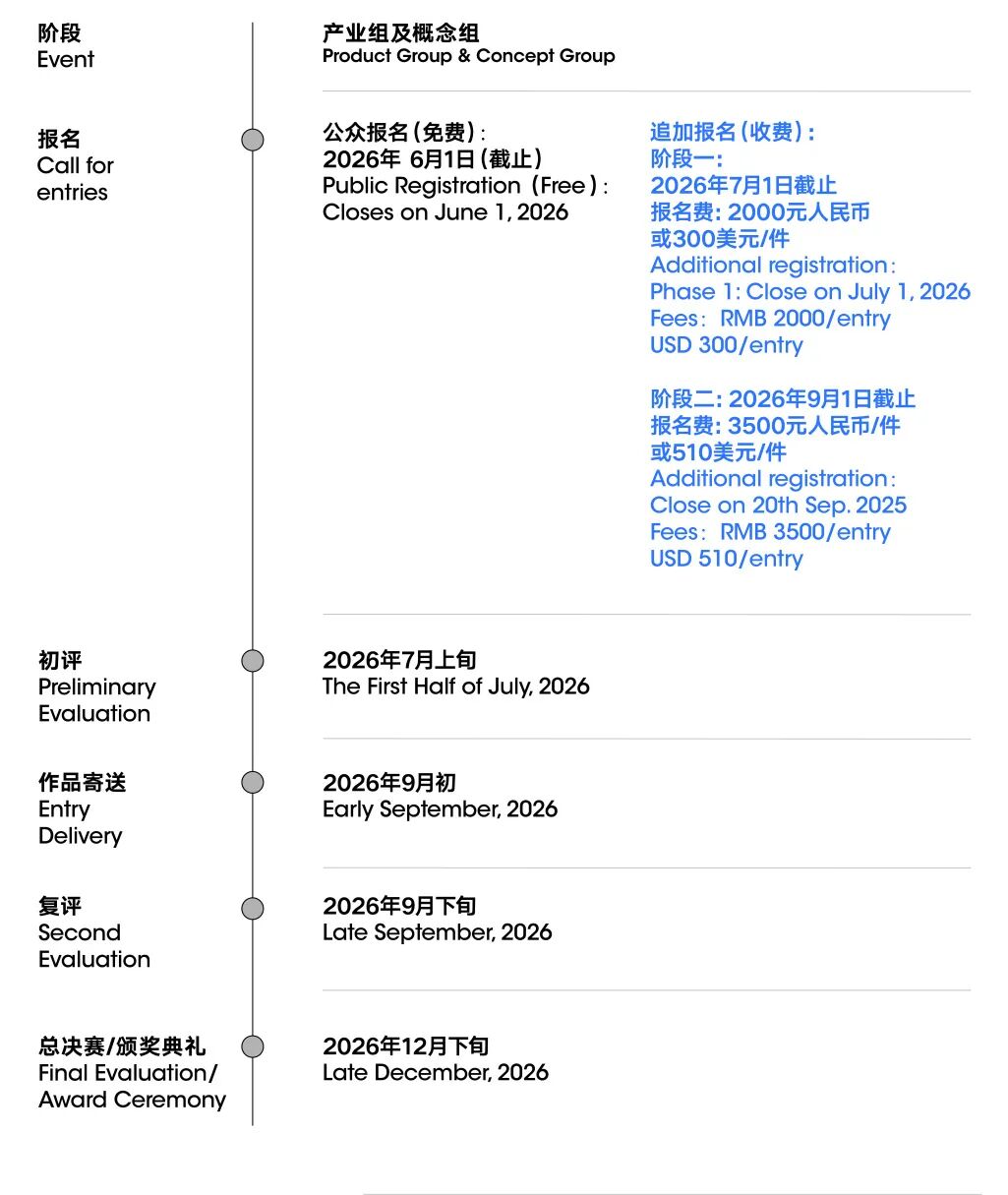 概念组设:“明日之星”(4项,2万/项)、“设计新锐”(10项,授予奖杯及奖状)