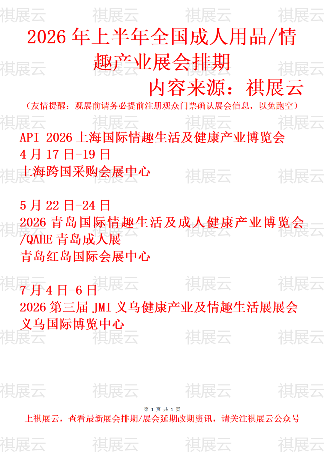 5月22日-24日丨2026青岛国际情趣生活及成人健康产业博览会/QAHE青岛成人展丨青岛红岛国际会展中心2026杭州国际花卉园艺博览会/2026第九届杭州园林景观暨庭院植物展览会丨4月25-27日丨杭州国际博览中心(G20)3月12日-14日 | CMEE 2026第54届中国国际医疗器械(山东)博览会 | 济南黄河国际会展中心SICE 2026杭州国际半导体与集成电路产业创新展览会丨5月14日-16日丨杭州大会展中心5月15-17日丨2026第24届山西医疗器械展览会暨2026中西部(太原)大健康产业博览会丨太原晋阳湖国际会展中心6月5日-7日丨2026中国东北(沈阳)国际矿业能源装备技术博览会丨沈阳国际展览中心3月27日-29日丨2026第四届中国安徽(淮南)国际煤炭装备及矿山设备技术博览会丨淮南奥体中心3月27-29日丨2026贵州国际适老化用品及养老服务博览会丨贵阳国际会展中心3月17日-19日丨2026年第三十三届成都医疗健康博览会(春季)/成都医博会丨成都世纪城新国际展览中心2026第28届大连国际工业博览会丨5月13日-16日丨大连自贸区国际会展中心5月22-24日丨2026第八届中国(河北)国际橡胶塑料及包装工业博览会/河北橡塑及包装展丨石家庄国际会展中心4月1日-3日丨HCE 2026广州国际健康产业博览会丨广州保利世贸博览馆4月1日-3日丨2026第三届长三角国际电力产业链博览会(EPOWER长三角全电展)5月29日-31日丨2026中国西部(兰州)智能装备制造业博览会/西部兰州工博会丨兰州新区丝路绿地国际会展中心2026中国(广州)国际银发经济康养产业博览会丨5月29-31日丨广州保利世贸博览馆扫码[我要参观/参展/采购](展位预订/展会预登记/展会门票/采购买家注册)商务合作可微信扫码联系工作人员:免责声明:本宣传文案所涉数据、图片、视频等资料部分来源于网络,转载目的在于传递更多信息,内容仅供参考,准确内容以展会官网发布为准。如涉及侵权,请联系删除。