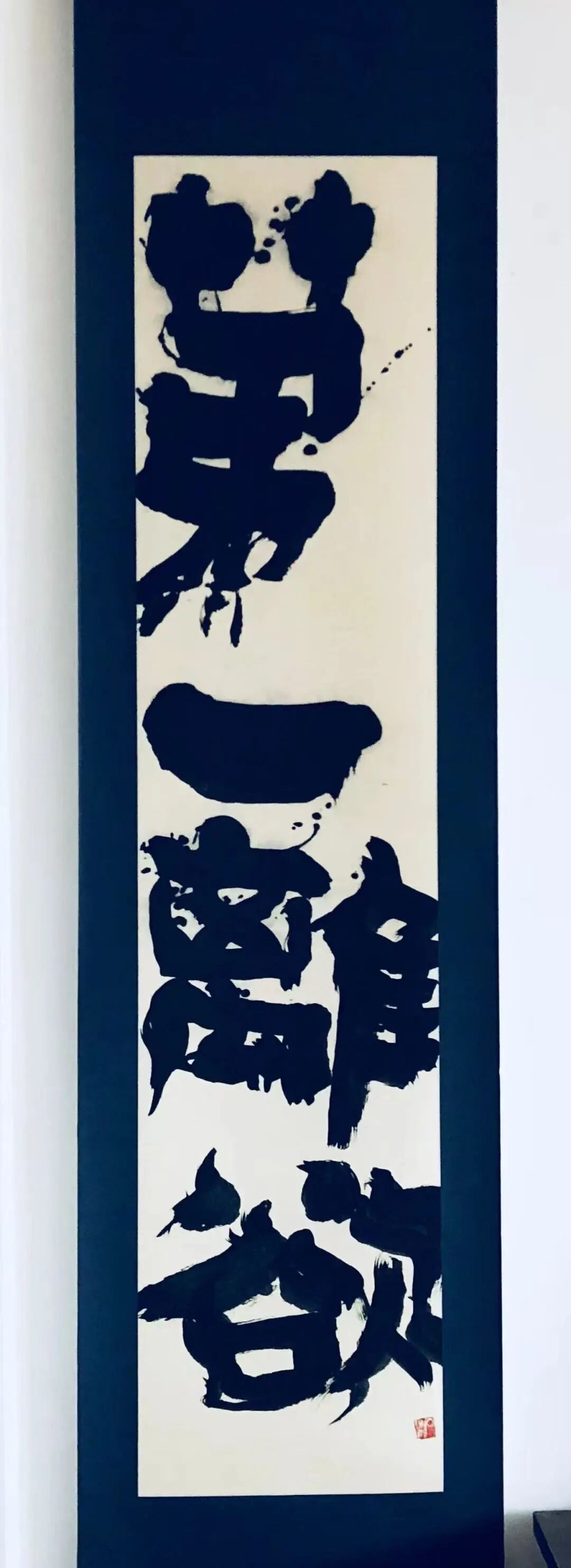 现代书法不仅是日本文化的产物,也深深植根于中国的传统文化之中,两者相互影响,共同推动了东亚书法艺术的发展和创新。现代书法在日本被称为前卫书法,起源于20世纪三、四十年代,受到欧美抽象主义文化的影响。现代书法的起源和发展是一个复杂而多元的过程,主要受到日本文化与艺术的影响,同时也和中国的传统书法有着深厚的渊源。日本书法家如上田桑鸠(1899-1968)、手岛右卿(1901-1987)、比田井天来(1872-1939)等人,从中国传统书法中吸取精华,发展出现代书法。井上有一(1916-1985)则是20世纪下半叶日本杰出的书法艺术家之一,被誉为日本战后现代艺术中的代表人物。井上有一的书法对西方艺术及中国当代书法产生了较大的影响,并对当代艺术的诸多领域产生了一定的冲击。