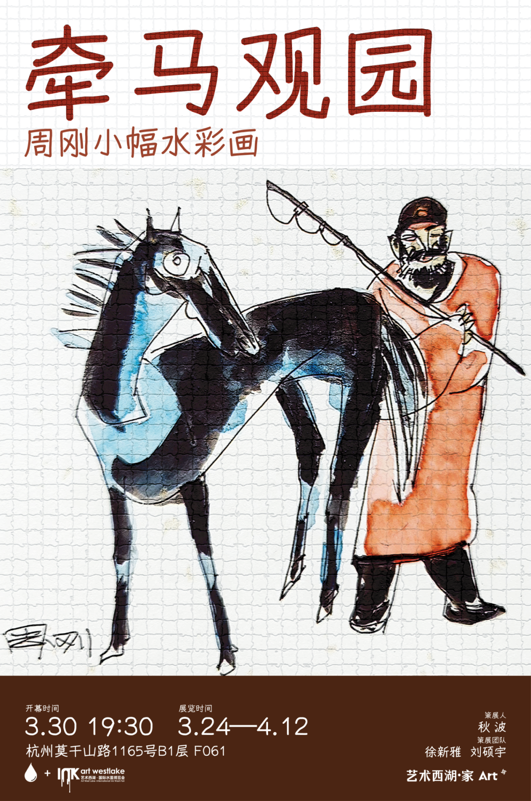 牵马观园 一 周刚小幅水彩画