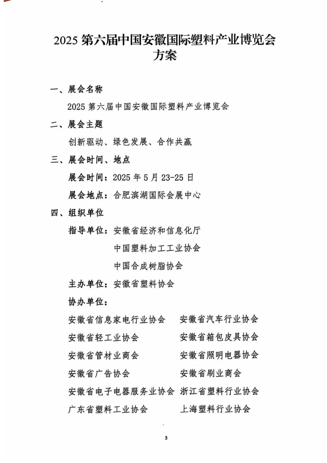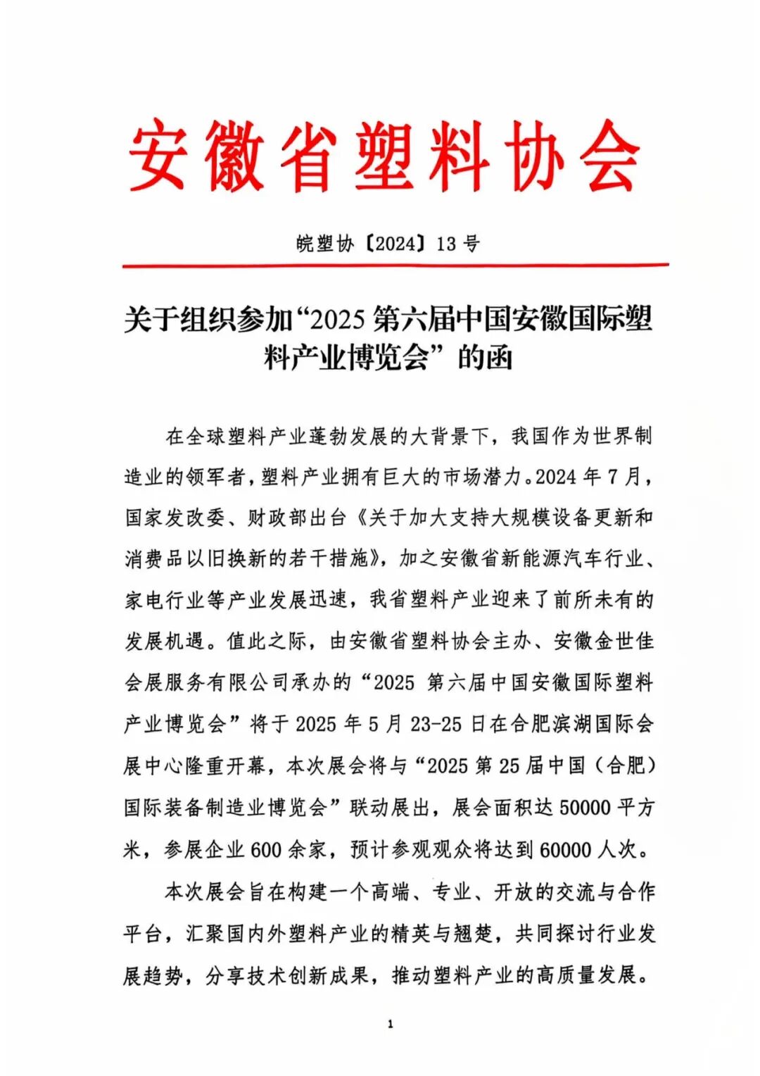 2025中国安徽国际塑料产业博览会将有超过50家塑料行业相关协会成为协办单位,组织相关企业赴会参观,寻找贸易机会。