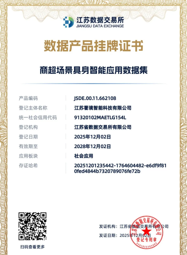 全国首单“具身智能数据集”在江苏省数据交易所上架并完成交易