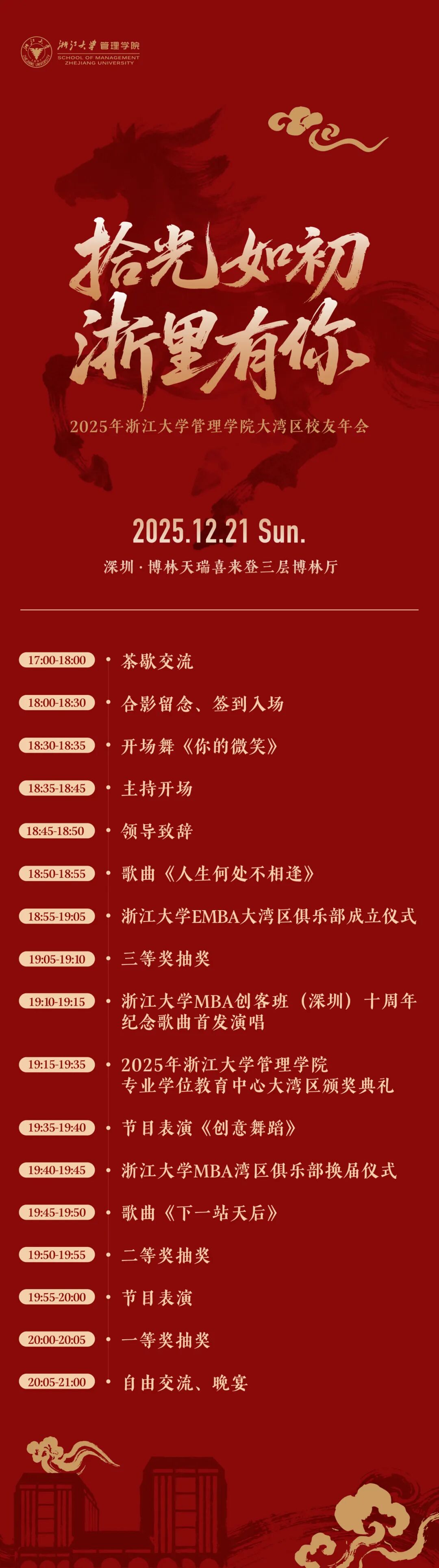 浙江大学管理学院将于12月21日(星期日)晚举办2025年大湾区校友年会,我们诚挚地邀请您拨冗赴约,与师长同窗重聚,共话今昔。无论您是深耕于此,还是初至湾区,都是“求是”共同体中不可或缺的一员,我们期待您能在交流中激发思考,于对话里看见未来。