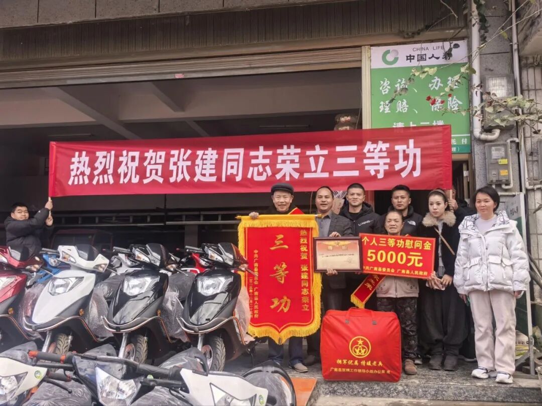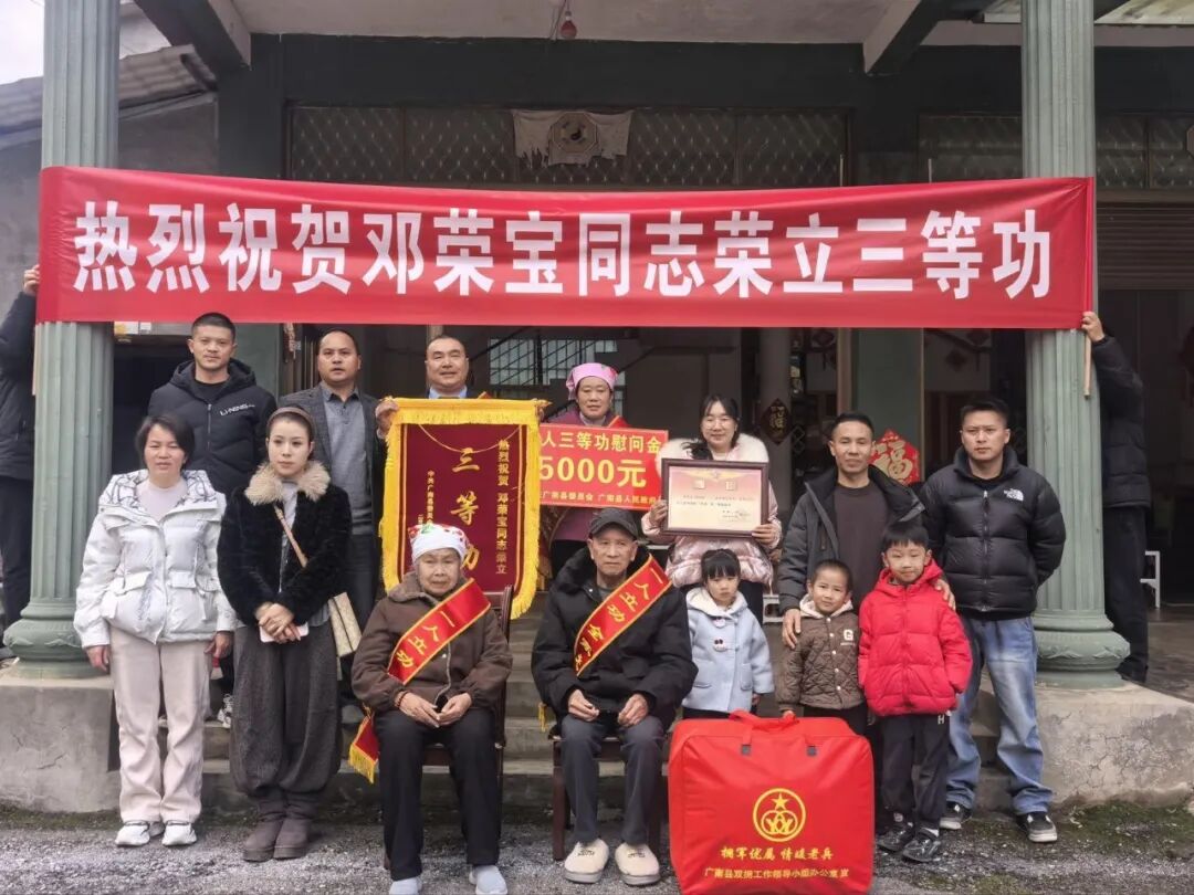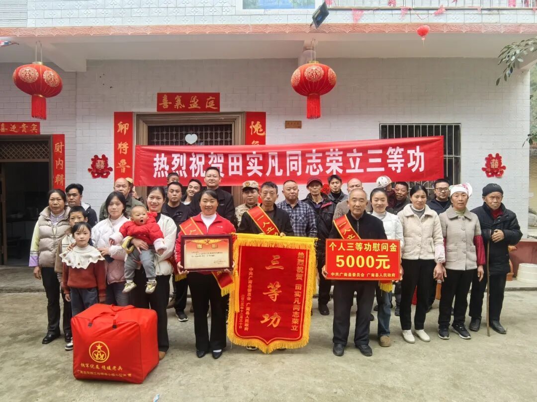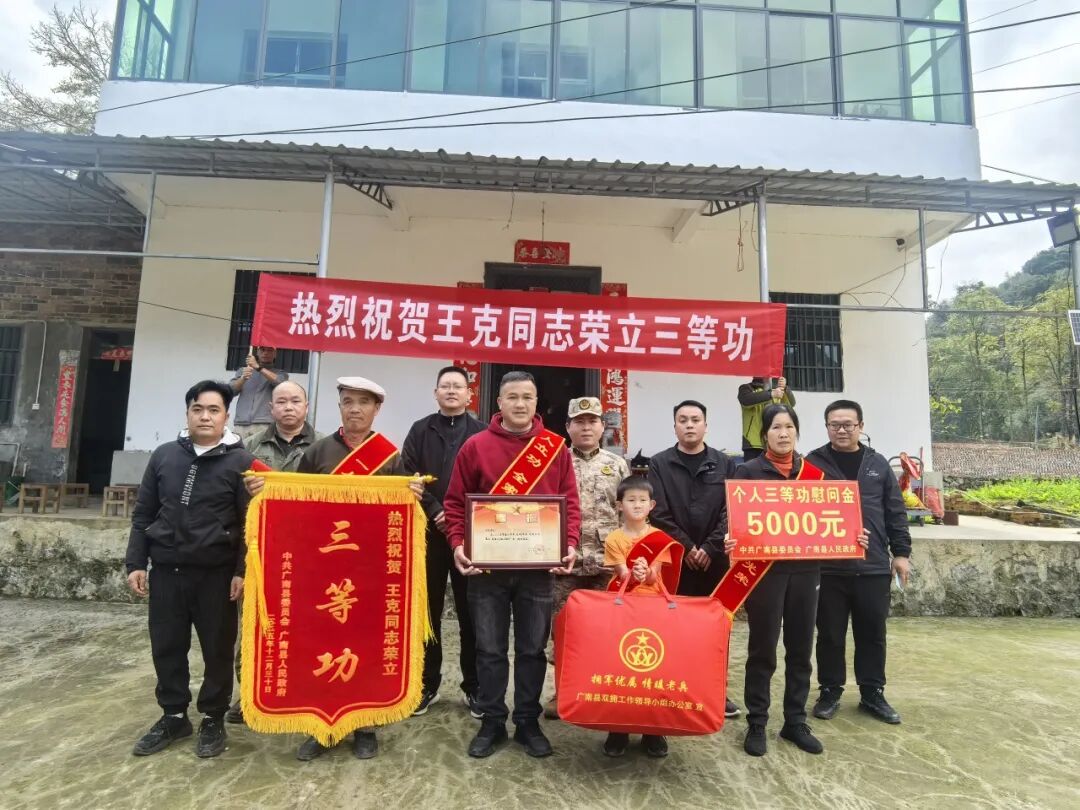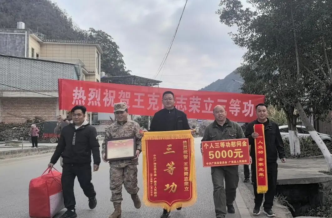 新年伊始,喜讯频传,广南县八宝镇王克、田实凡、邓荣宝、张建4名现役军人同年同立三等功,县送喜报工作组将承载着荣誉的喜报、功臣锦旗及慰问金逐一送到军属家中,让尊崇之光闪耀壮乡苗岭,以实际行动彰显对国防事业和军人的崇高敬意,传承红色基因,赓续红色血脉。