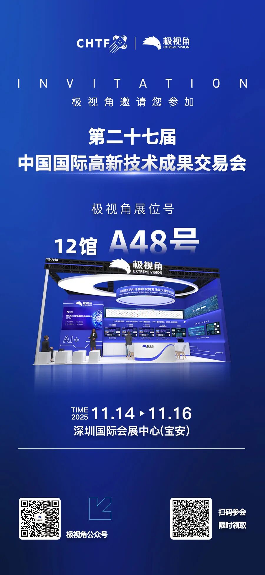 第二十七届中国国际高新技术成果交易会将于 2025年11月14日-16日在深圳国际会展中心(宝安)举行。极视角作为中国领先的AI计算机视觉算法及大模型平台企业,已备好硬核科技大餐,在12号馆-A48展位等你赴约~