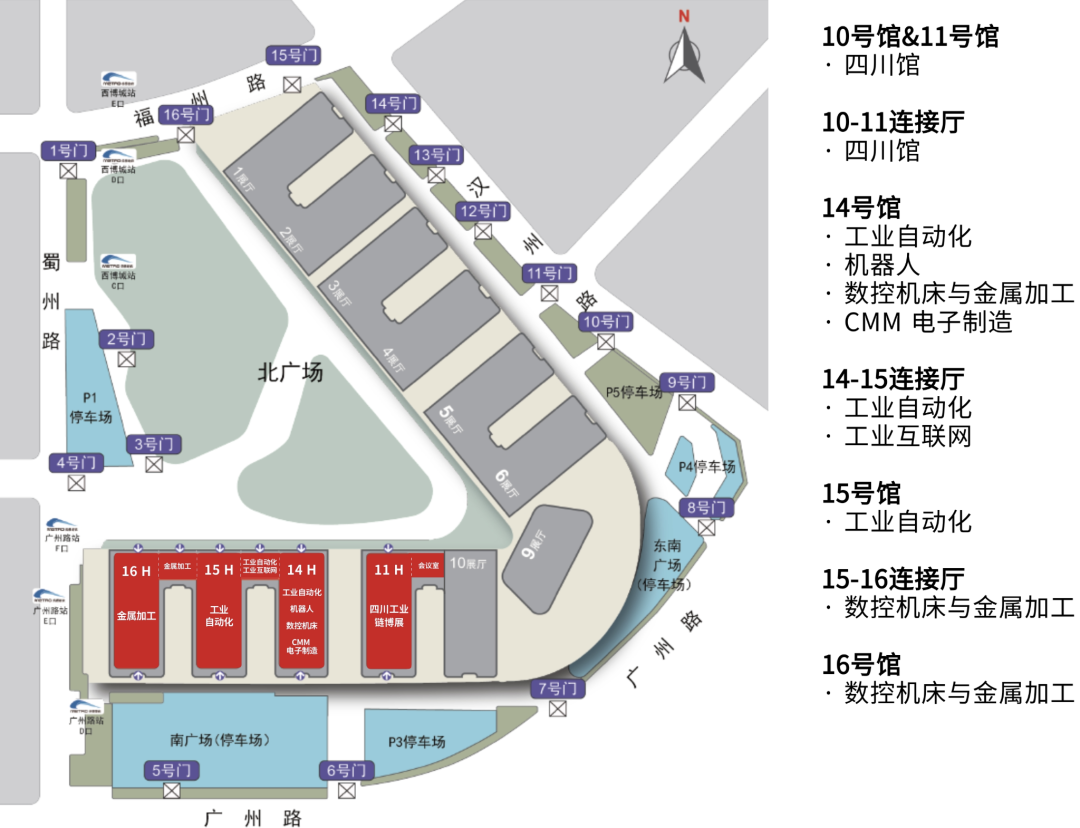 成都工博会旗下分设工业自动化展、数控机床与金属加工展、机器人展、新一代信息技术与应用展(工业互联网展)、节能与工业配套展及新材料展等六大主题展。