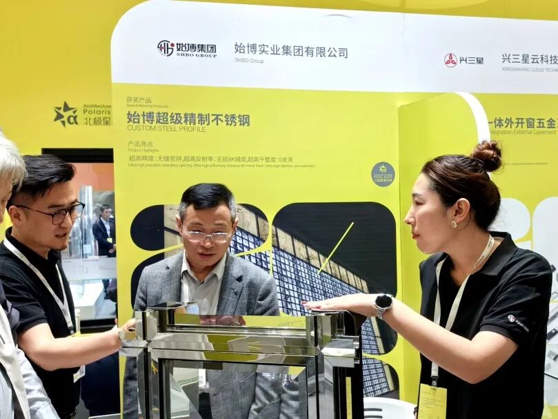 博览会上人头攒动,各类创新产品与前沿技术琳琅满目。赵会长与会员单位代表们参观学习分会会员单位中原思蓝德、坚朗、兴三星、奋安铝业、白云化工、安泰、始博等行业龙头企业的展位。代表们穿梭于各个展区之间,仔细观摩每一项新技术、新产品的展示。从新型的建筑材料,到绿色环保的工艺,无一不吸引着他们的目光。