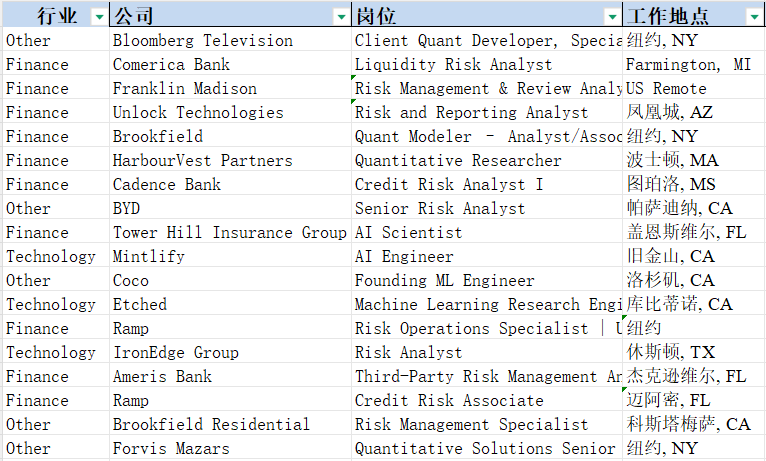 (Tech、Data、Risk等热门行业)