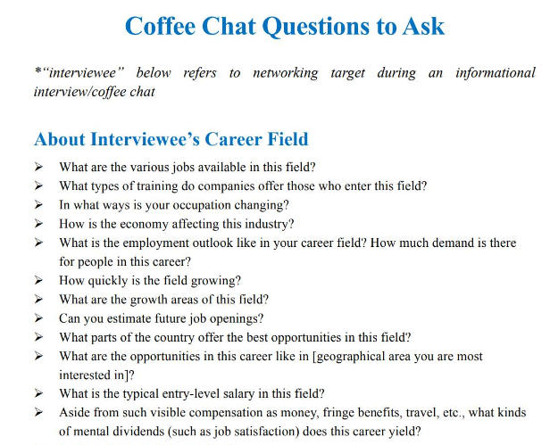 Coffee chat问题模版: