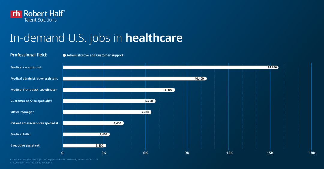 医疗行业新增12.6万+岗位,其中40%是行政支持类。虽然技术岗占比不高,但医疗行政岗位的需求量极大: