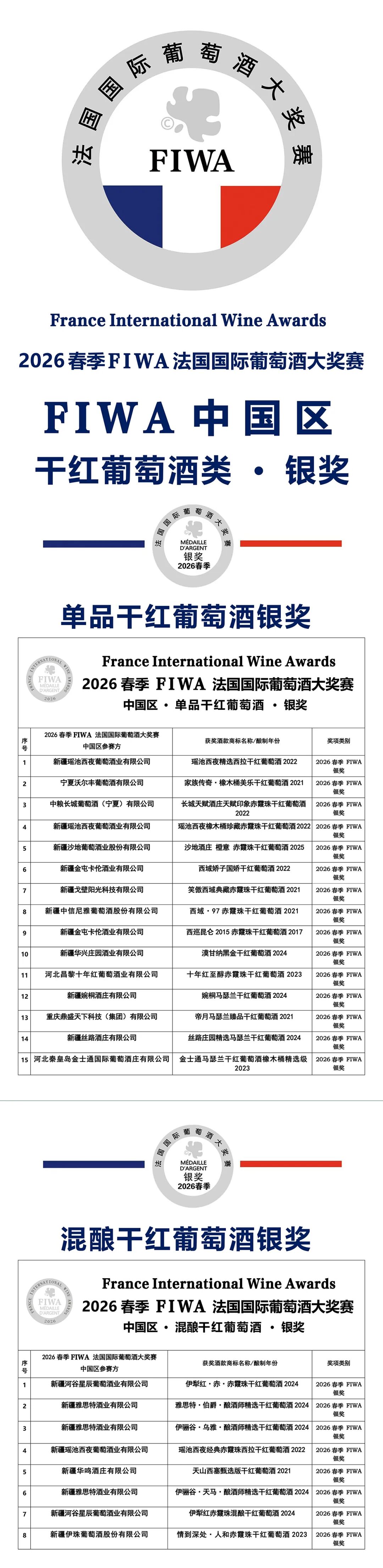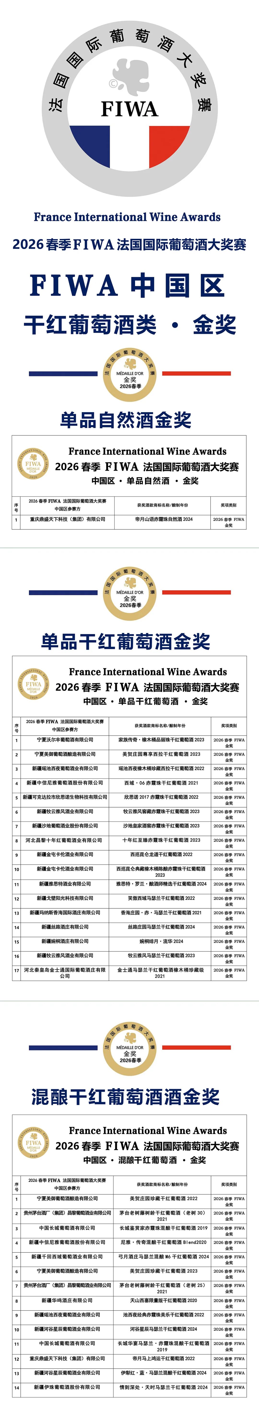 在连续3-5届法国国际葡萄酒、国际有机葡萄酒及国际烈酒大奖赛中荣获奖项、品质稳定、个性突出且能够代表其产区特色的酒庄酒,将由法国FIWA 组委会直接公益性地推介到法国葡萄酒及烈酒高端院校教材品鉴授课用酒。参加国际大奖赛的最终目的,是被国际认可、认知、并更近一步开发国内及国际市场。这,还需要伯乐来引路!