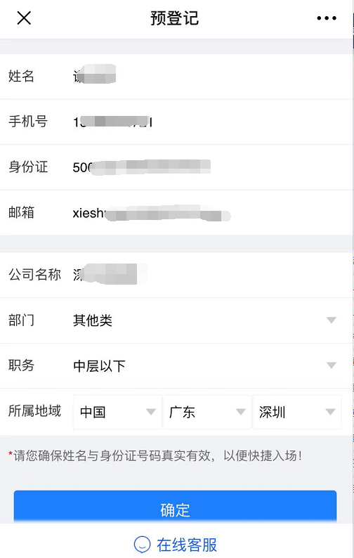 请观众填写个人资料时,务必填本人真实有效信息,以免影响入场。