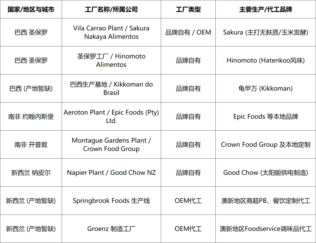 通过对全球(严格排除中国大陆外)酱油工业化生产设施的全面、详尽盘点,清晰地折射出当代调味品工业在资本运作、技术升级与市场拓展中的三条核心演进逻辑