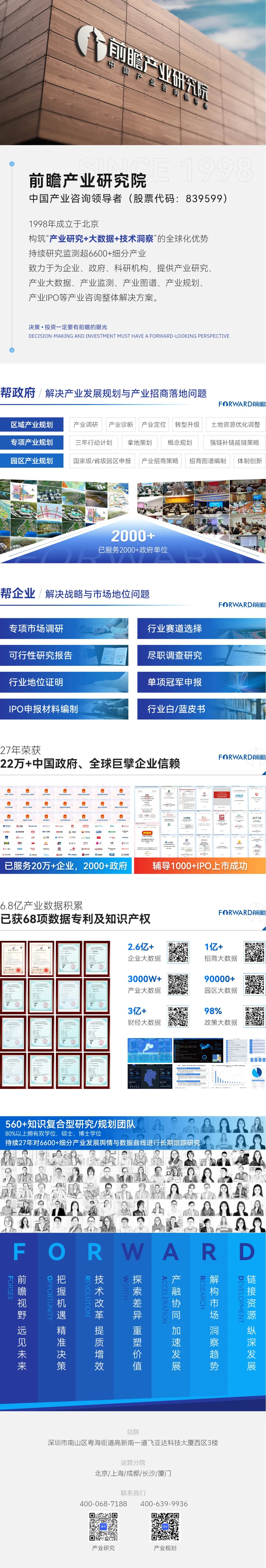 同时前瞻产业研究院还提供产业新赛道研究、投资可行性研究、产业规划、园区规划、产业招商、产业图谱、产业大数据、智慧招商系统、行业地位证明、IPO咨询/募投可研、专精特新小巨人申报、十五五规划等解决方案。如需转载引用本篇文章内容,请注明资料来源(前瞻产业研究院)。