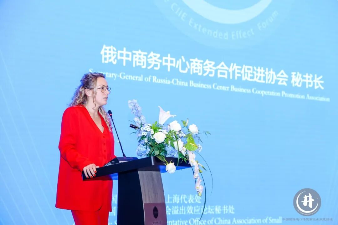 林谦女士代表俄中商务中心商务合作促进协会发言,协会 2015 年成立于圣彼得堡,2020 年在虹桥商务区设立代表处,致力于搭建中俄政企信任桥梁,助力中企高质量出海。已促成中俄会展业交流、政府互访及经贸合作,如组织上海经贸团访俄、承办俄罗斯国家级展会等。本次进博会,协会带来会展、物流、艺术等六大板块内容,包括全球唯一的叶卡捷琳娜大帝琥珀肖像、融合中俄文化的 “福” 字套娃等特色展品。俄罗斯正大力发展创意经济,期待与各方携手挖掘合作机遇。