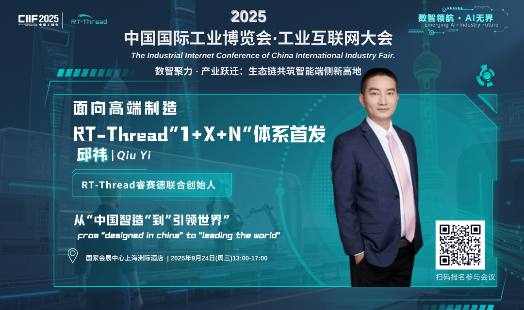 明日"国际工业互联网大会"上,RT-Thread睿赛德联合创始人兼工业事业部负责人邱祎将围绕RT-Thread 如何以生态环打通 “芯片 - OS - 应用” 链路展开分享,重点解读面向高端制造的 “1 + X + N” 体系 —— 以 “1 个底层 OS” 为核心底座,延伸出睿擎工业软硬一体平台、程翧整车基础软件OS、睿信创达通用专业版OS等“X 个核心方案”,全面覆盖能源、电力、轨交、工业、汽车、机器人等N 个关键领域和场景,为千亿边端侧插上智能化的翅膀,夯实产业数智化转型技术根基。