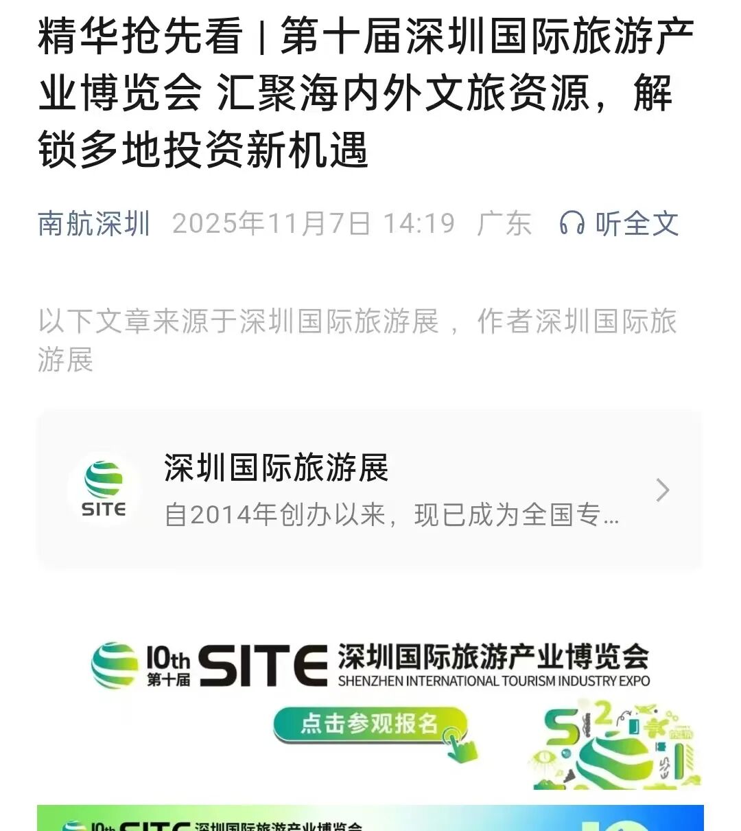 第11届【深圳国际旅游产业博览会】(简称:深圳国际旅游展 或 SITE)将于2026年11月在深圳(福田)会展中心隆重举行。