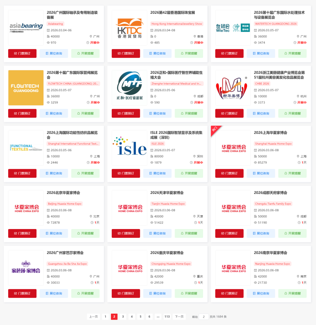 7月全国将举办多场重要的展会活动,涵盖了环保、水处理、泵阀、制冷、消费电子、电机、机械、风能、餐饮、清洁用品、养老、汽车、口腔、医疗器械、保健、运动、宠物、餐饮、糖酒、旅游、游乐、食材、工业、金属加工、建材、电梯、铝工业、竹业、门窗、民宿、汽车制造技术、橡塑、大数据、游乐、安全、轮胎、厨房卫浴、玻璃、奶业、化工、珠宝、能源、健康、食材、孕婴童、锻造铸造、涂料、品牌授权、摄影器材展等多个领域。小编整理了7月全国展会排期表,希望能帮助你规划行程。末文可获取全国展会门票预约入口~(大多展会限时免费预约)