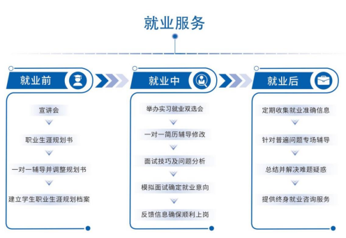 工控帮总部就业部分配备了专职就业指导老师和就业指导课程,负责为加盟学校培养就业指导教师,共享就业企业资源。从学生入学、就业前、就业中、就业后进行一系列就业指导服务,并延长追踪服务时间,形成一整套完善的就业服务体系。