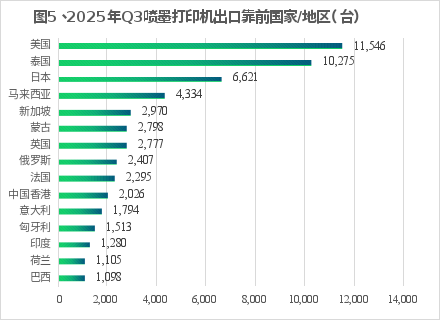 、2025Q3喷墨打印机出口前的国家地区情况: