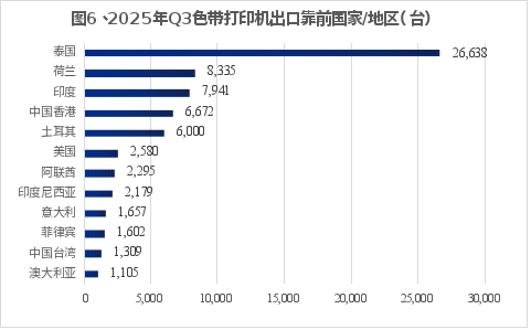 、2025Q3色带打印机出口前的国家地区情况: