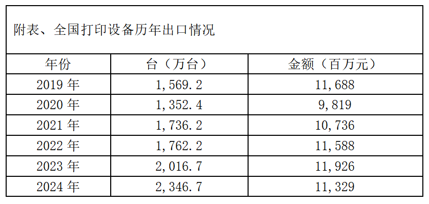 九、附全国历年打印设备出口情况表:
