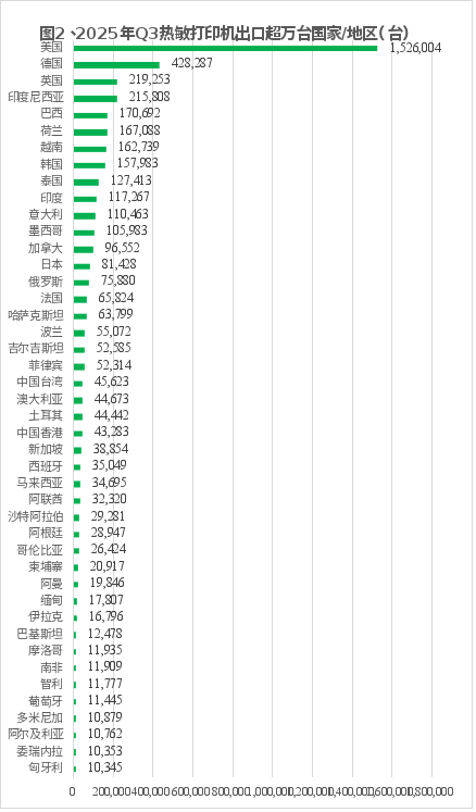 、2025Q3热敏打印机出口前的国家地区情况: