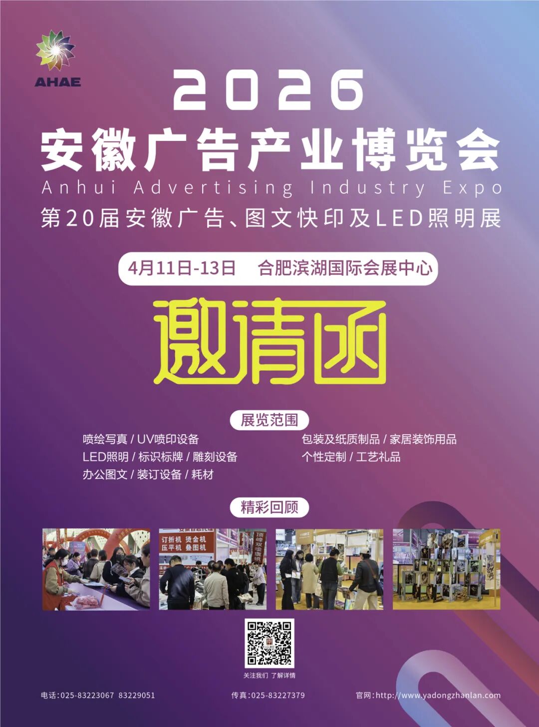 春风拂过江淮大地,万象更新。在这充满希望与活力的季节里,2026安徽广告产业博览会暨第20届安徽广告、图文快印及LED照明展将于2026年4月11-13日在合肥滨湖国际会展中心盛大启幕!