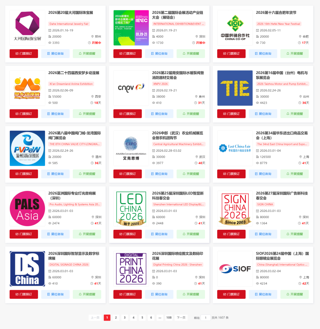 识别二维码进入页面,找到需要的展会点击门票预约即可~
