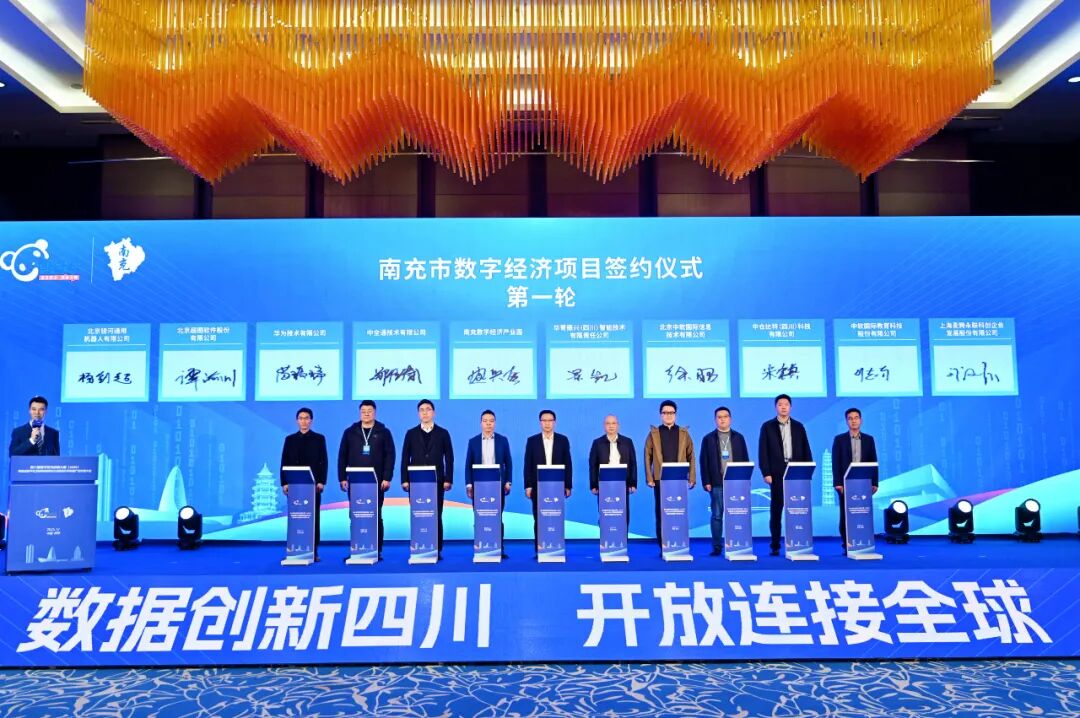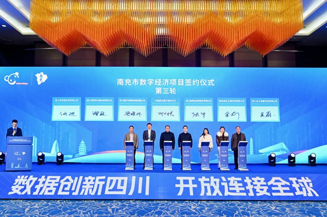 同时,会上举行了数字经济项目集中签约仪式,南充数字经济产业园分别与北京银河通用机器人有限公司、北京超图软件股份有限公司、华为技术有限公司、中全通技术有限公司、华菁振兴(四川)智能技术有限责任公司、北京中软国际信息技术有限公司、中仓比特(四川)科技有限公司、中软国际教育科技股份有限公司、上海麦腾永联科创企业发展股份有限公司签署入驻南充数字经济产业园协议;南充发展投资(控股)有限责任公司与中电云计算技术有限公司、南充产业发展集团有限公司与迈普通信技术股份有限公司、四川嘉陵江数字科技有限责任公司与成都久信信息技术股份有限公司、南充临江建设发展集团有限责任公司与深圳市纵横云链人工智能应用技术有限公司、中国移动通信集团四川有限公司南充分公司与四川华鲲振宇智能科技有限责任公司、中国电信股份有限公司南充分公司与四川中科氢能科技有限公司、中国联合网络通信有限公司南充市分公司与中科星图智慧科技有限公司签署市辖央企、市属国企与企业合作协议;建行南充分行分别与四川沃洛佳科技有限公司、四川迈京邦光电科技有限公司、四川顺芯半导体科技有限公司、四川省锦云信息技术有限公司、南充创念三维科技有限公司、四川云上惊喜科技有限公司进行投融资项目签约。