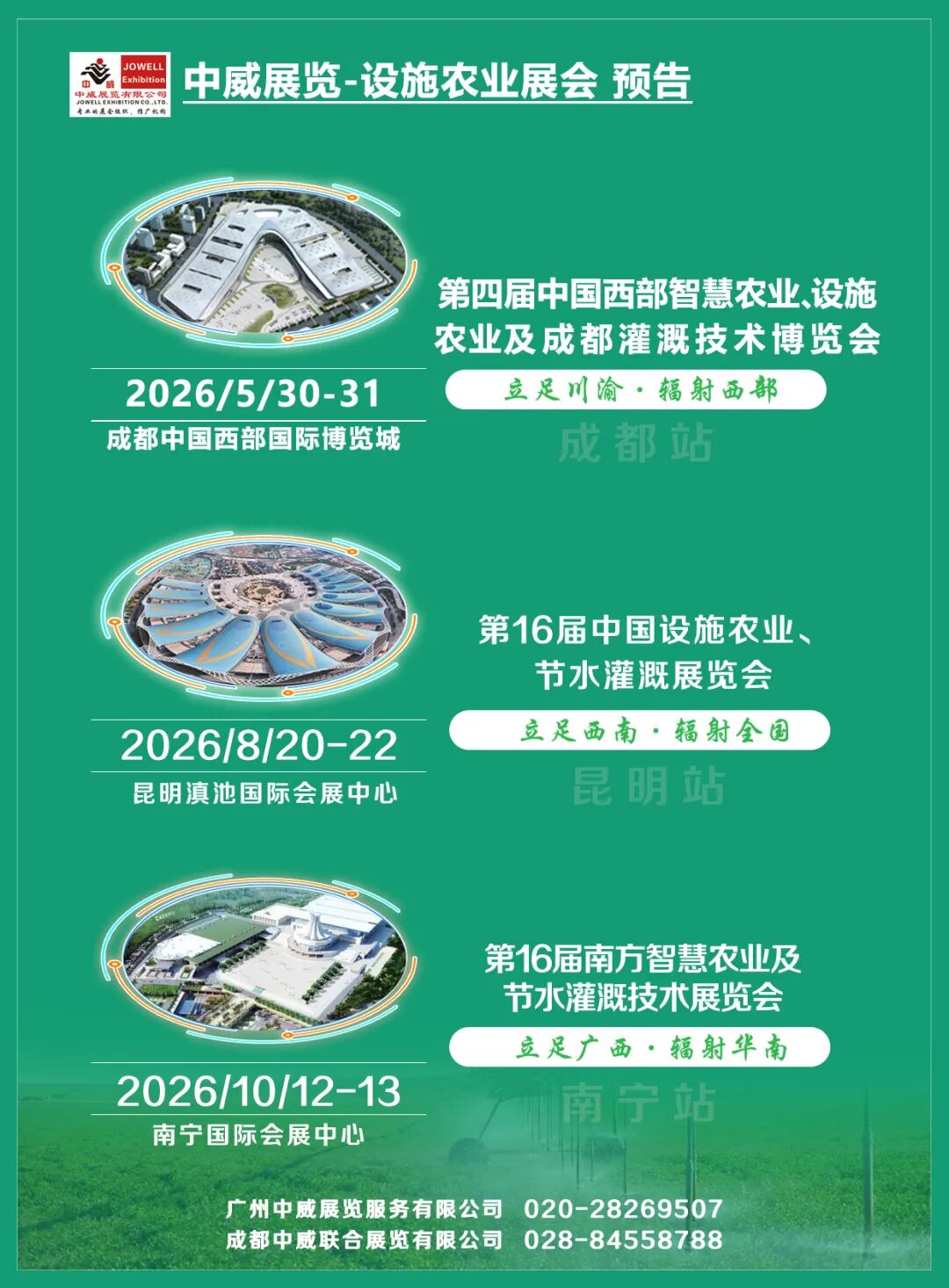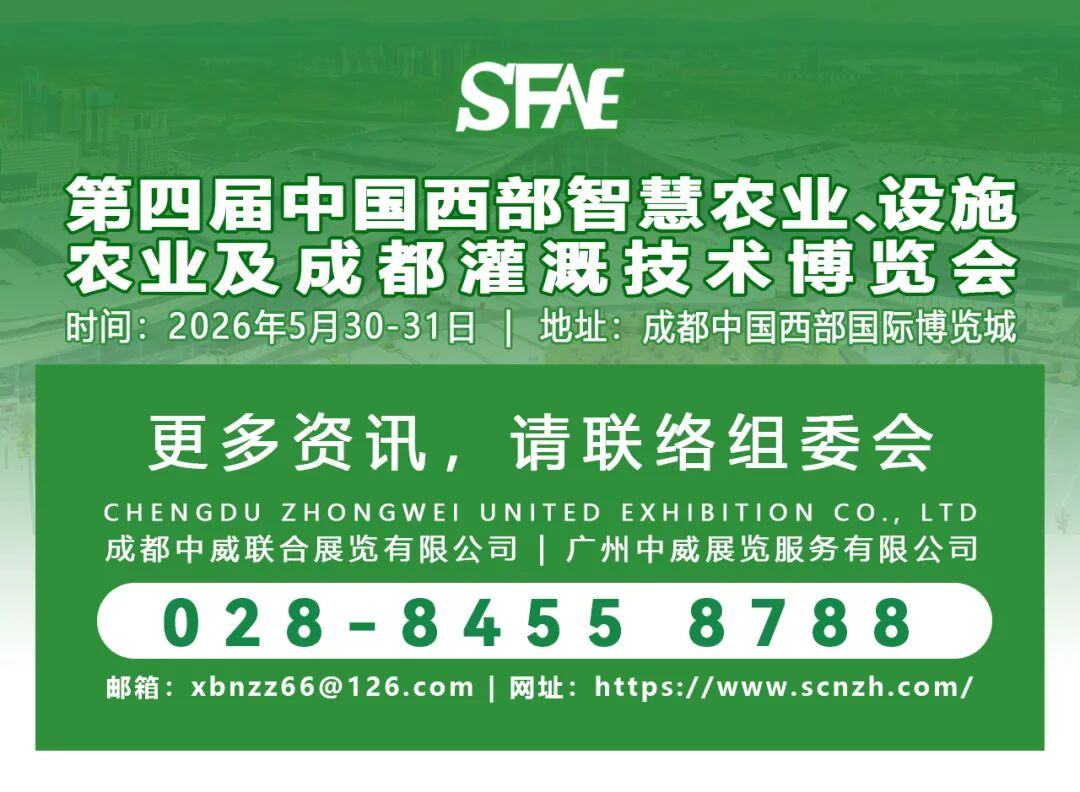 2026第四届中国西部设施农业及成都灌溉技术博览会定于2026年5月30-31日在成都中国西部国际博览城盛大举办。本届展会立足地域发展需求与行业发展趋势,广纳国内外先进设施农业装备、智能灌溉系统、温室设施及农业物联网技术等创新成果汇聚蓉城,聚合产学研用优质资源,搭建集产品展示、商贸对接、技术交流、成果转化于一体的高效专业平台,加速推广农业新质生产力,全力破解西部丘陵山地种植、水资源利用等产业痛点,助推西部农业高质量、可持续化发展。