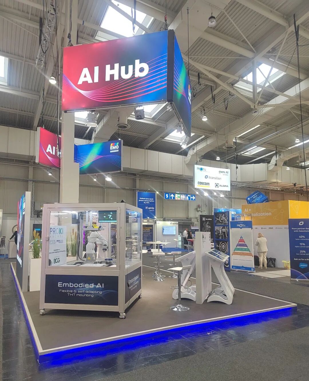 主办方组织了数字化+AI专区和AI Hub,通过交互式演示、人工智能支持的聊天机器人Emil和现实生活中的应用示例,让观众更好地了解人工智能在生产中优化生产流程、改进加工程序和预测性维护的潜力。