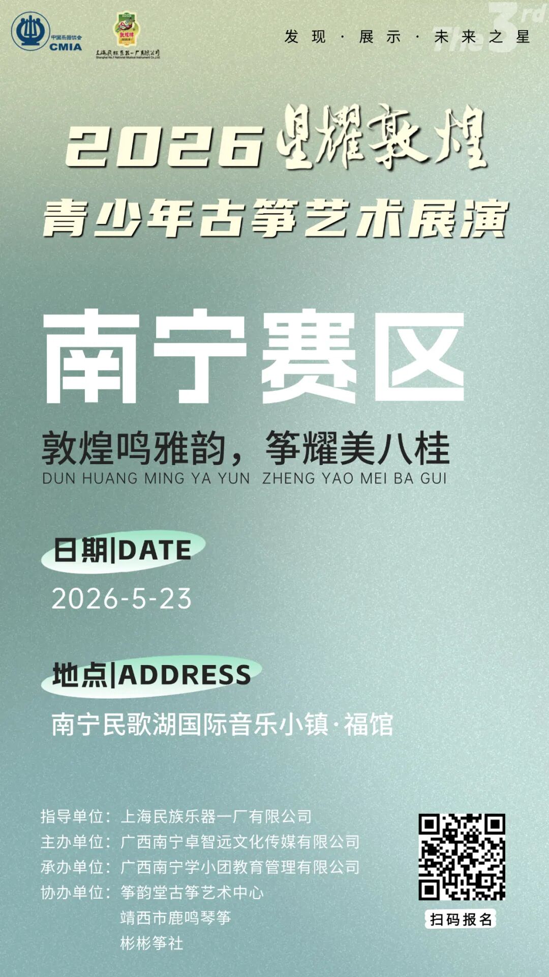 2026“星耀敦煌”青少年古筝艺术展演系列活动是“敦煌”品牌文化活动体系的重要内容之一,是上海民族乐器一厂有限公司面向广大民乐爱好者,为团结和服务于海内外民乐资源而打造的传承、弘扬、发展中国民族乐器文化和音乐文化的重要平台。旨在激发社会大众的民乐热情,为每一个怀抱民乐梦想的青少年提供展示的舞台和未来音乐拓展的机会。