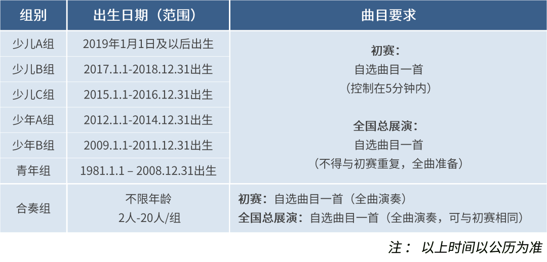 分组及曲目要求