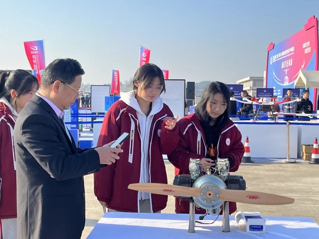 静态展区中,无人机、有人机、航空应急救援设备等高精尖产品琳琅满目。同学们零距离触摸株洲制造的“阿若拉”飞机,感受这座航空工业城市七十余年不息的发展脉搏。