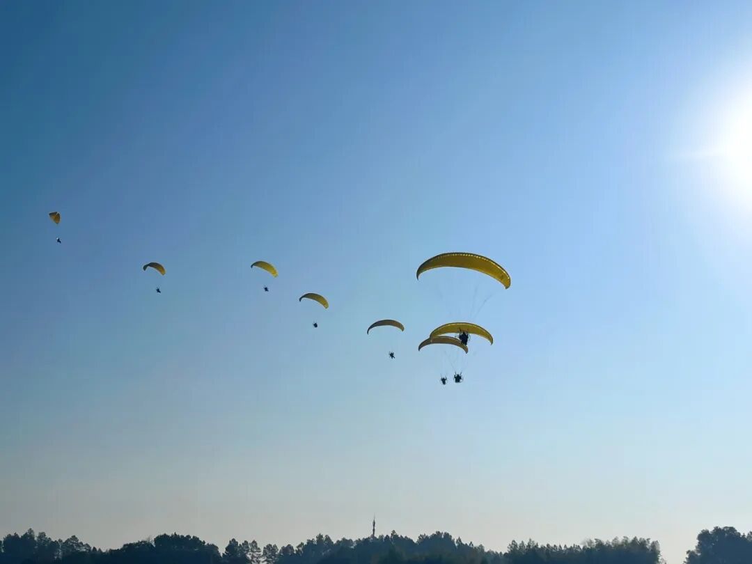 动力飞行表演中,红伞低空领队,黄伞梯队依次抬升,形成规则的螺旋。它们仿佛梦想与理性的化身,在属于大地的蓝天上攀登。追梦之路始于徘徊,过程或有曲折,但前景必定光明。我们生于希望,在一代代人的培育下,必将承接时代,逐梦蓝天。