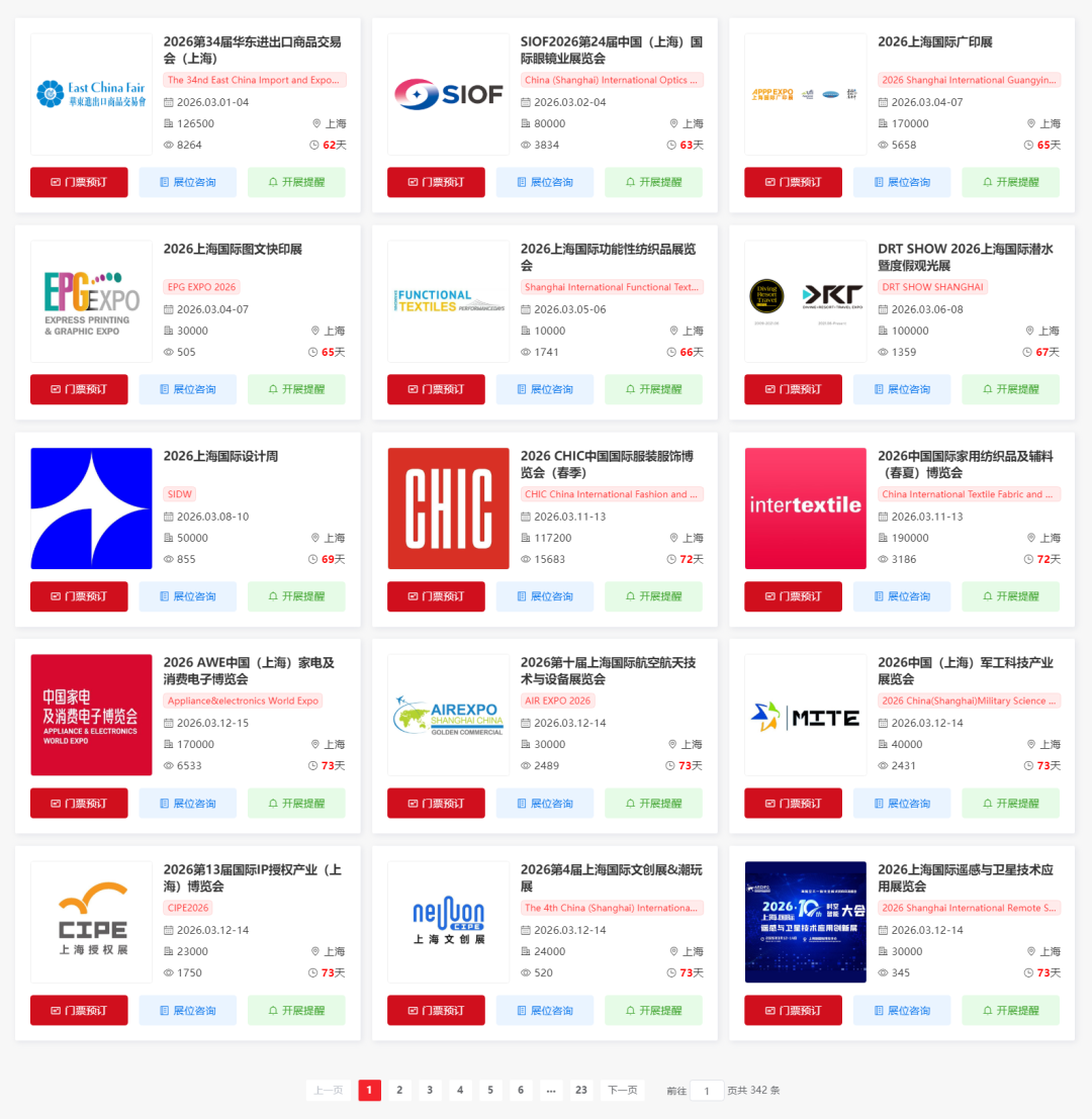 2026上海新国际博览中心展会排期一览